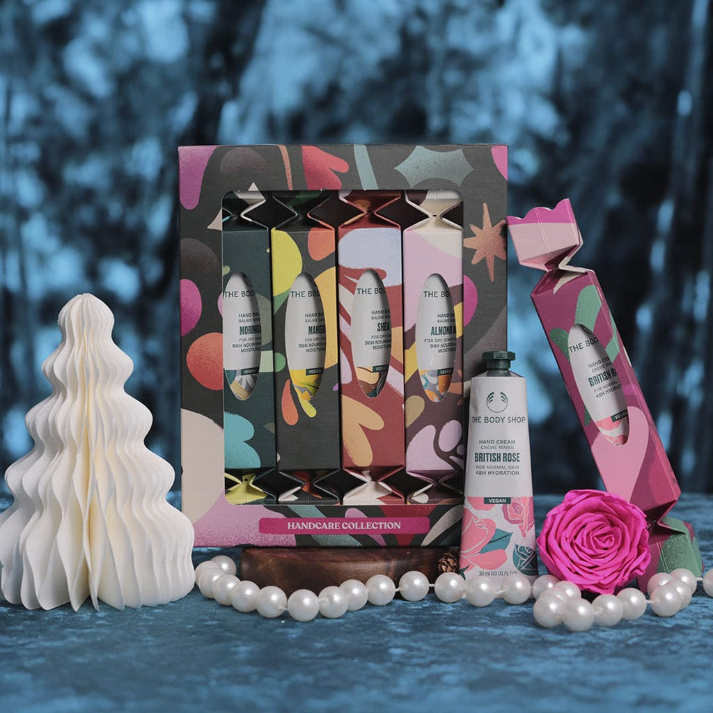 Keep hands happy all season with our Hand Care Collection – five nourishing creams and balms, each tucked into its own festive mini cracker and enriched with Community Fair Trade shea butter from Ghana.