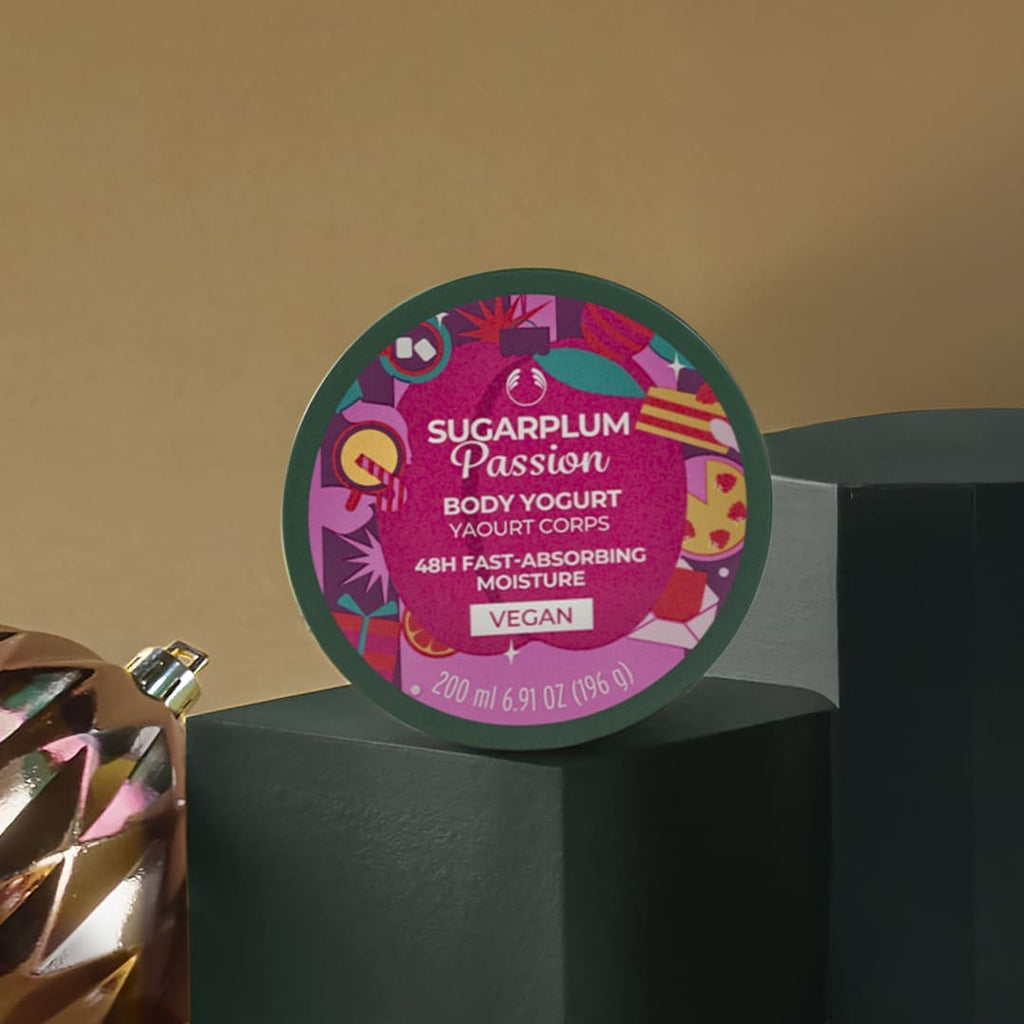 Give your skin a burst of lightweight, festive moisture with our Sugarplum Passion Body Yogurt.